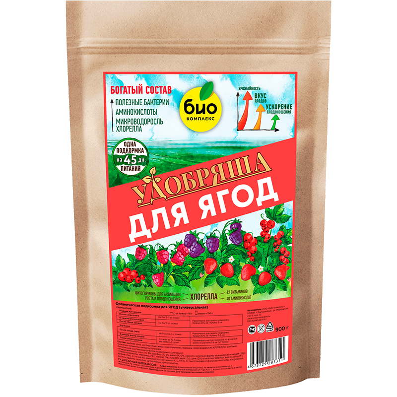 «Удобряша для ЯГОД» - органическое удобрение с аминокислотами и полезными почвенными бактериями.